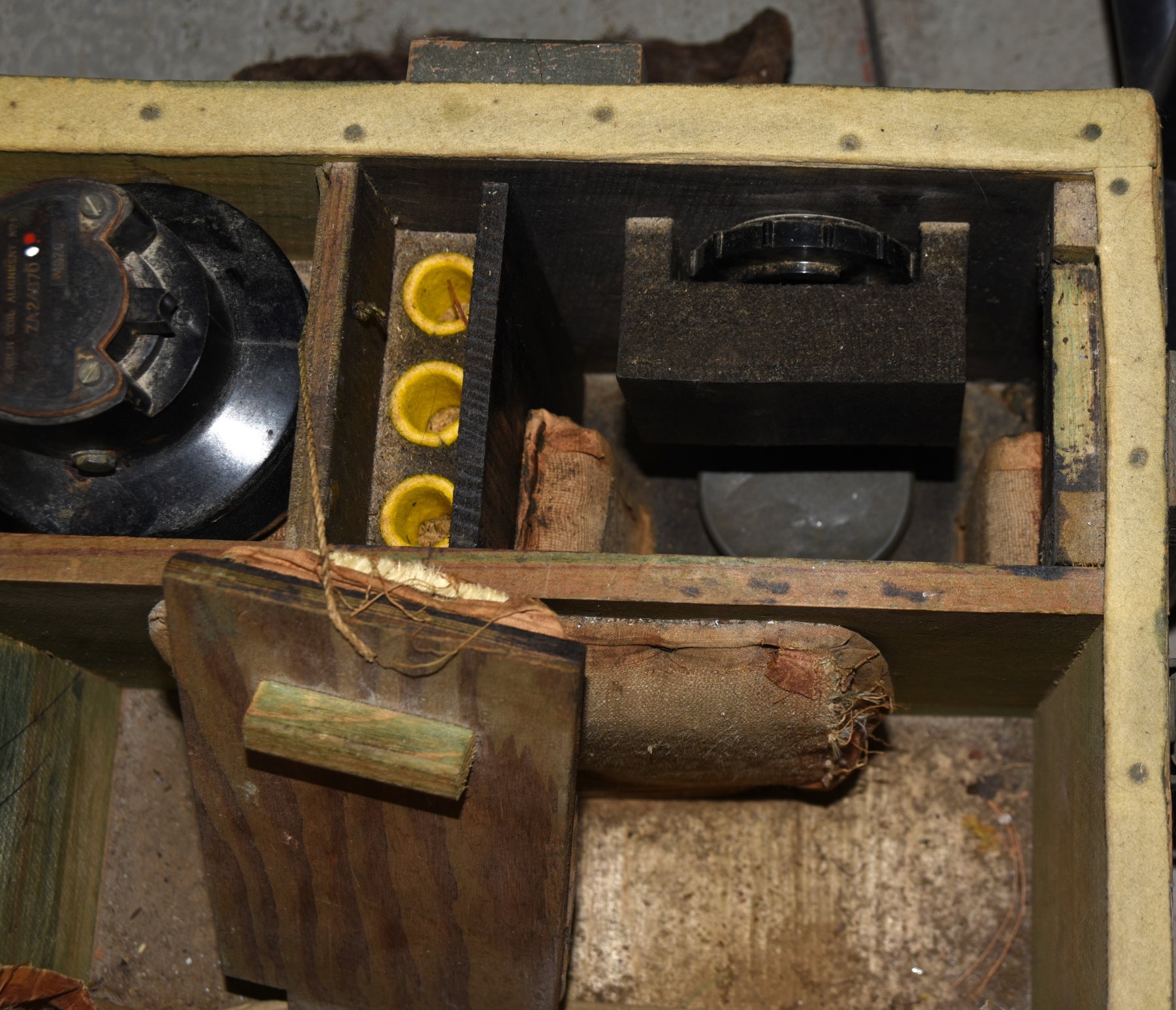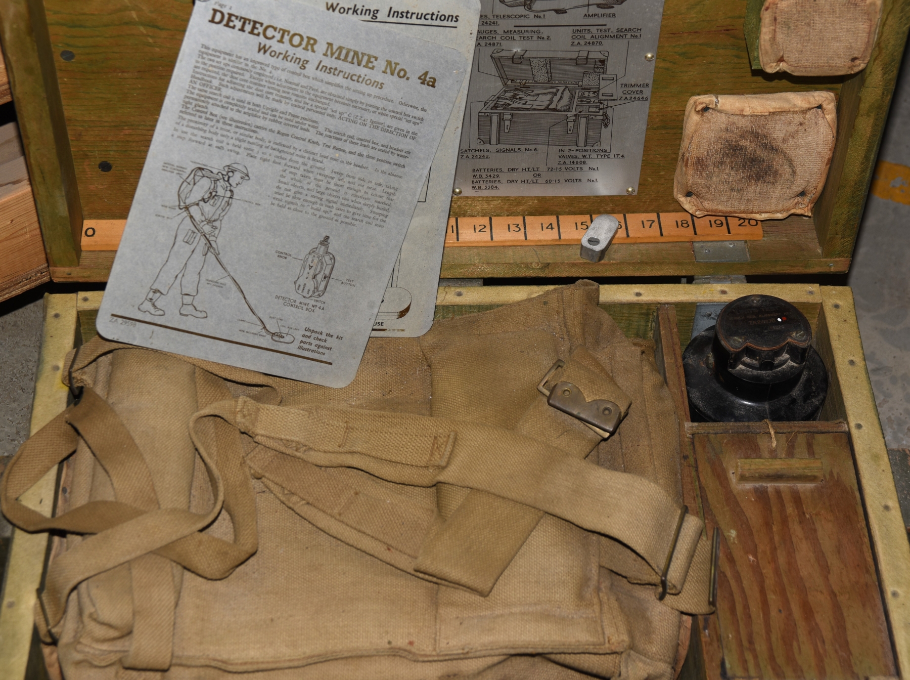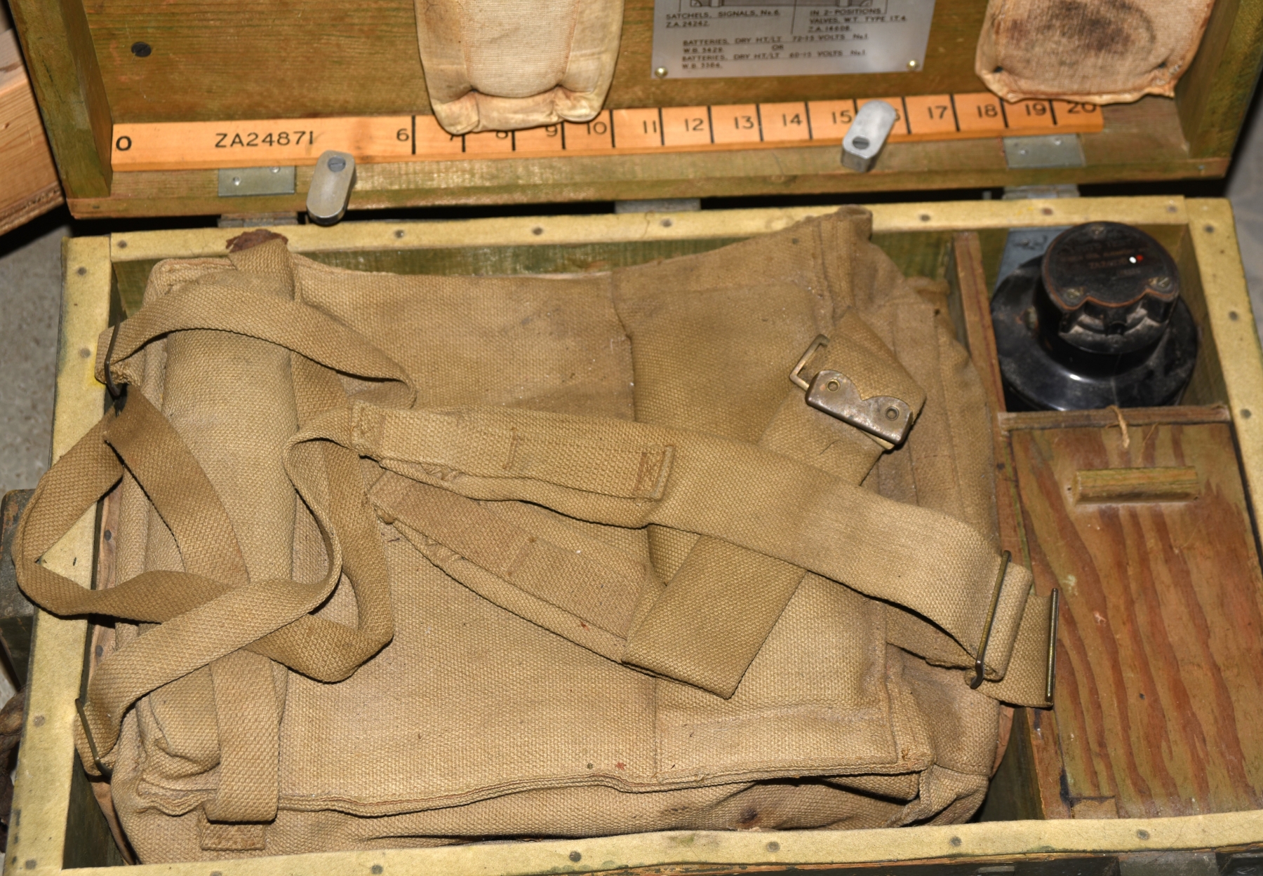 Canvas components display age-related discoloration, staining, and handling wear, consistent with military surplus equipment. Metal and electronic components show typical storage wear and light oxidation consistent with age.