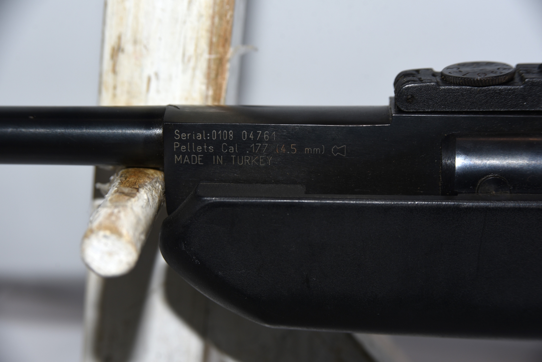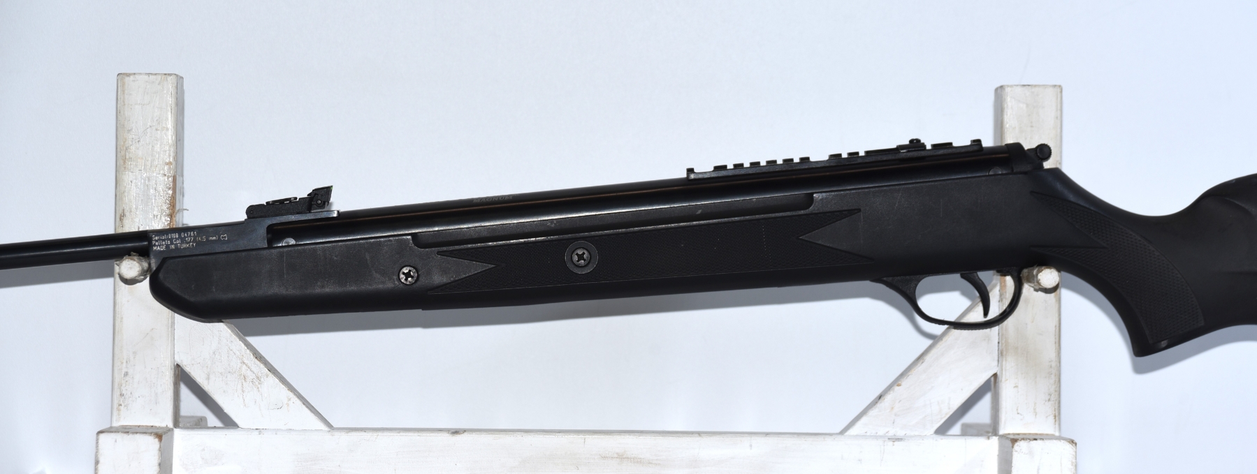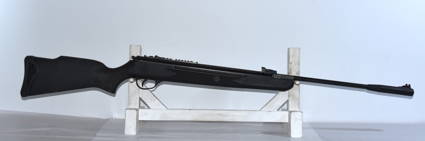 Synthetic stock shows light scratches and scuffs; condition is good.