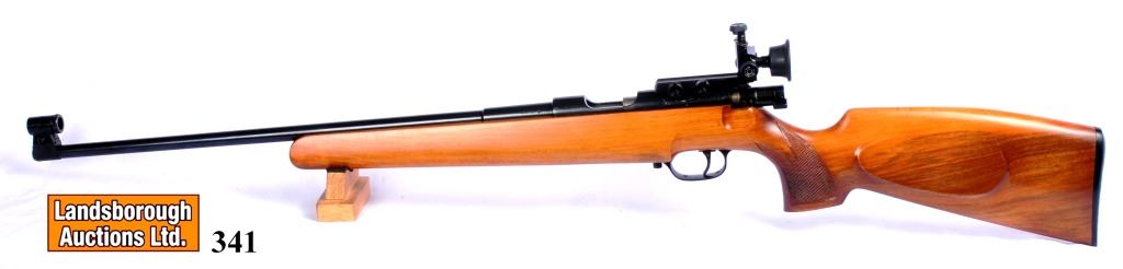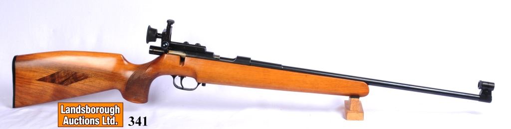 Non-restricted, bolt action single shot, 22 cal lr, 22" barrel, SN 47329, wood is very good, bluing is very good, bore is excellent, comes with factory match sights
