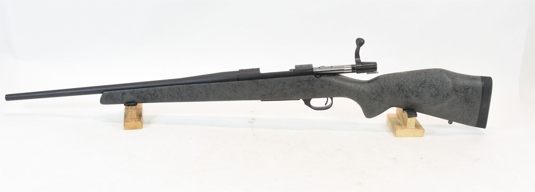 The synthetic stock, matte bluing and bore are excellent. The gun is as new and said to be unfired.