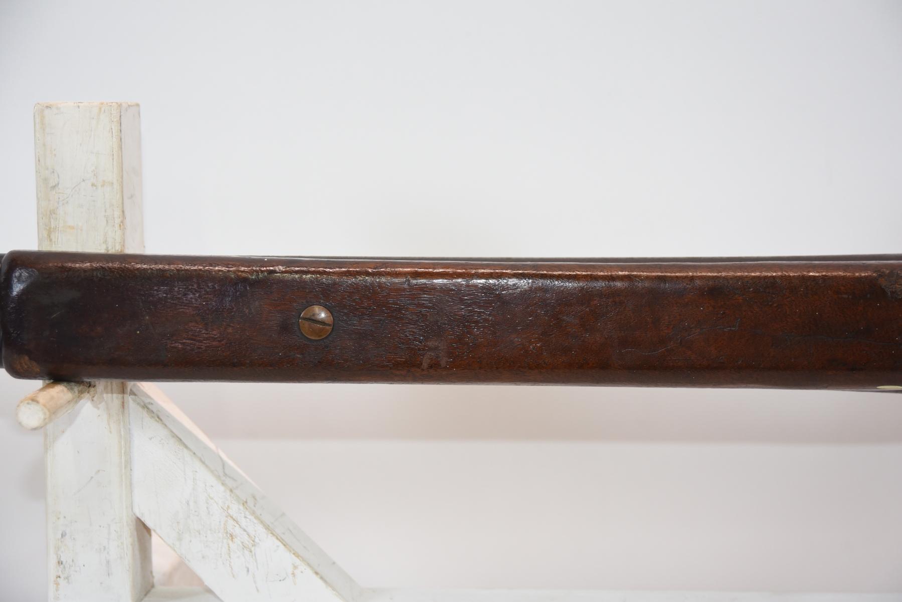 Wood stock shows scratches, scuffs, dents, finish wear, small chips by the firing pin areas, crack in the forearm; condition is less than fair.
