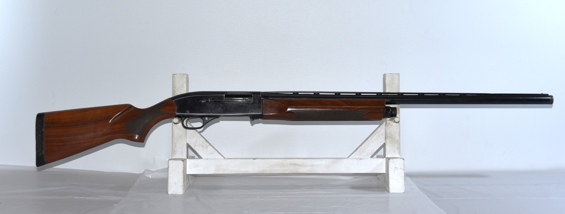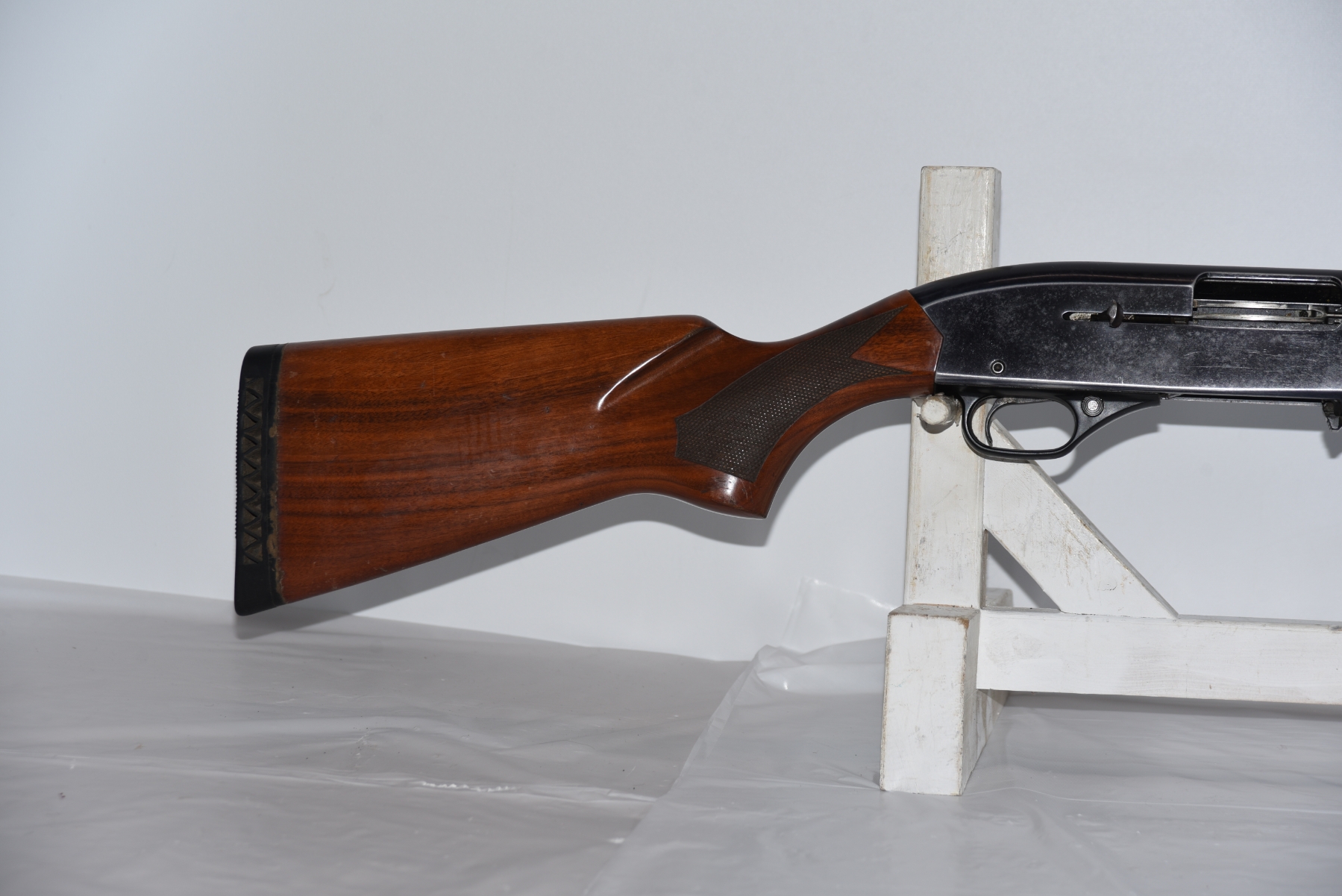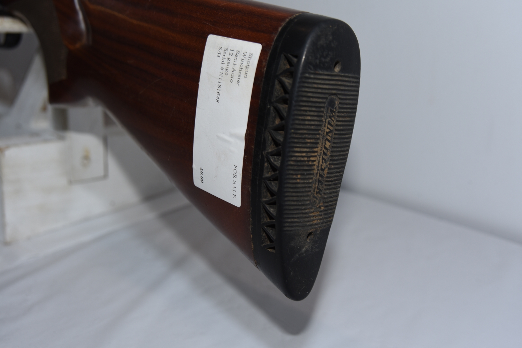 Wood stock shows scratches, scuffs, finish wear areas; condition is good.