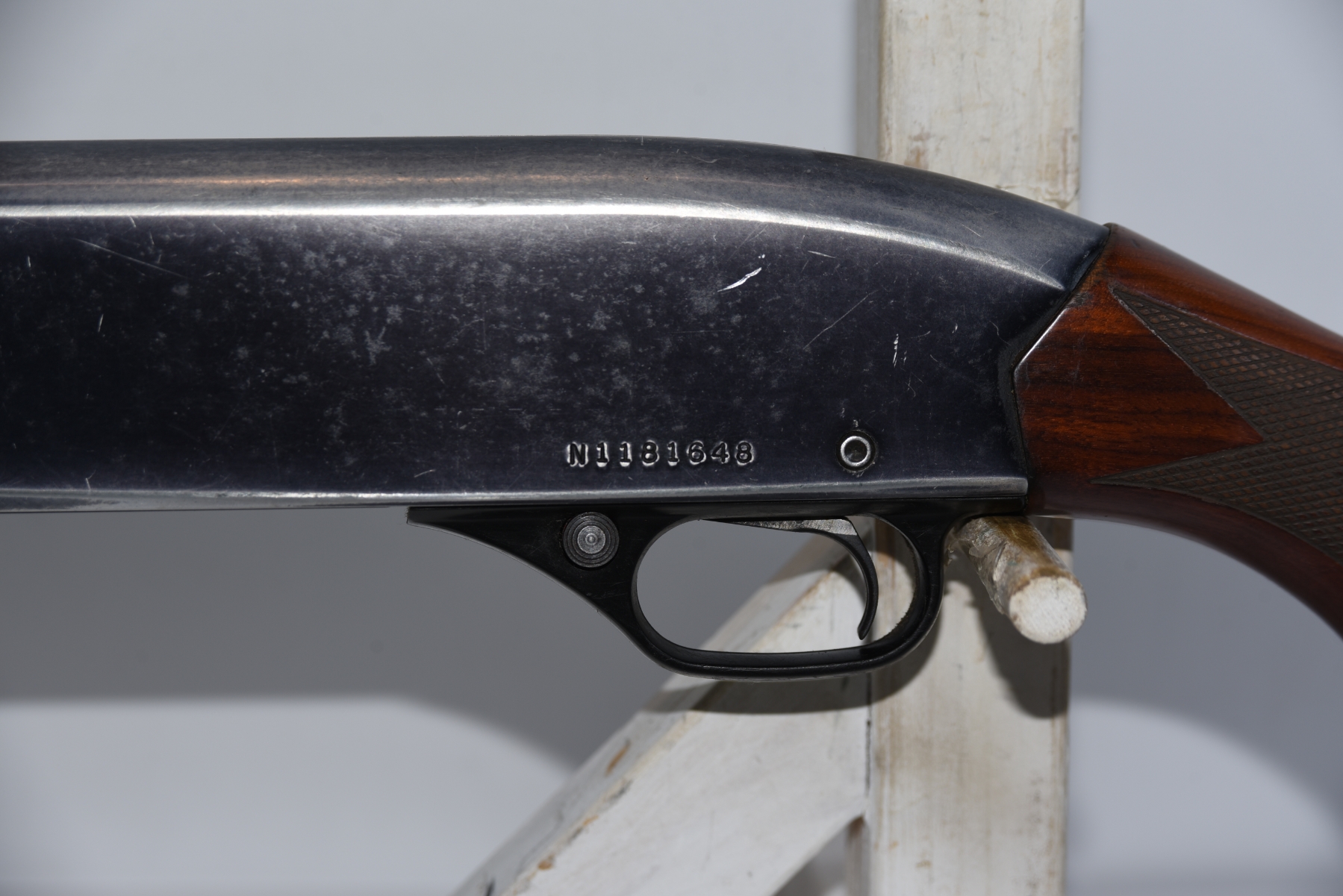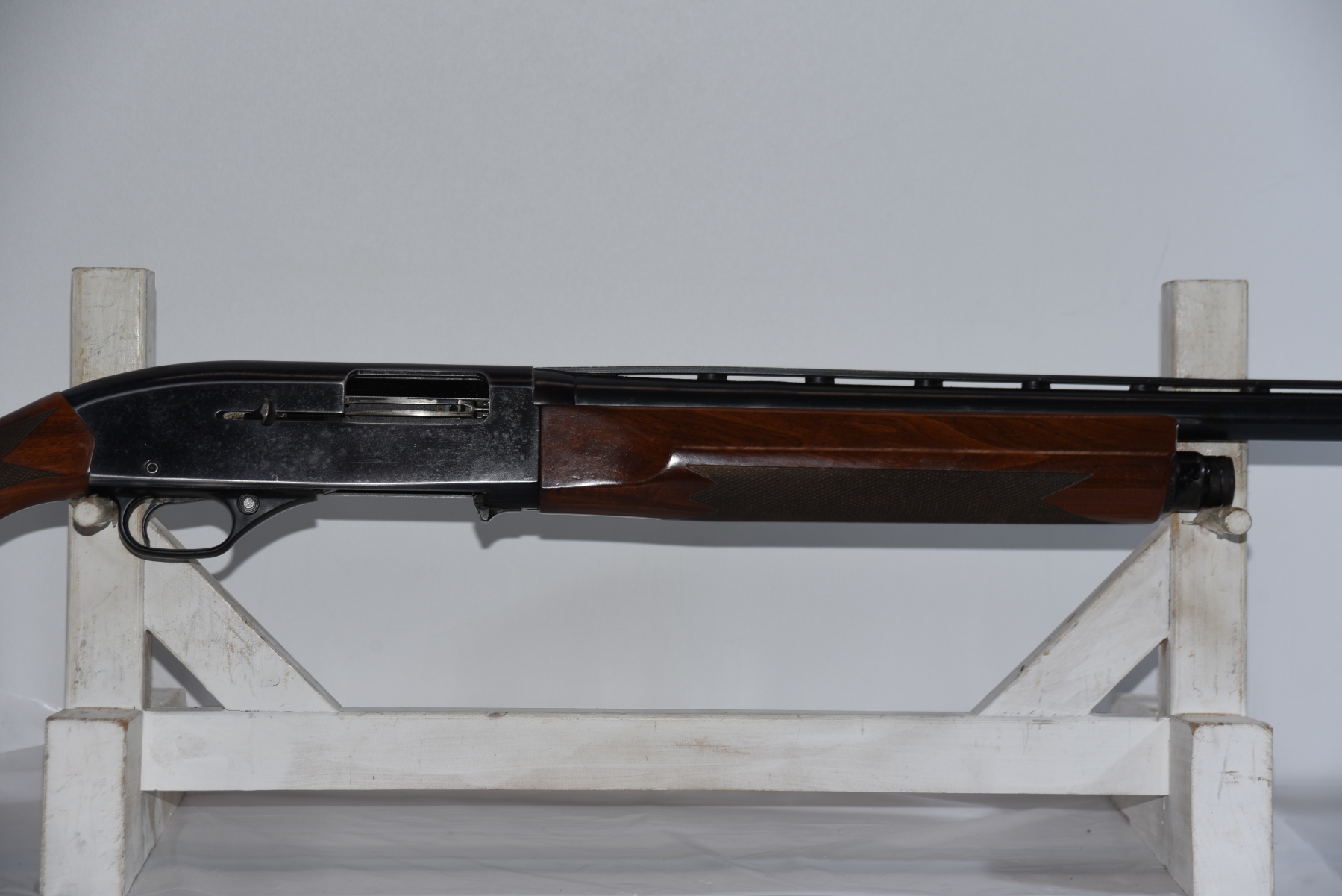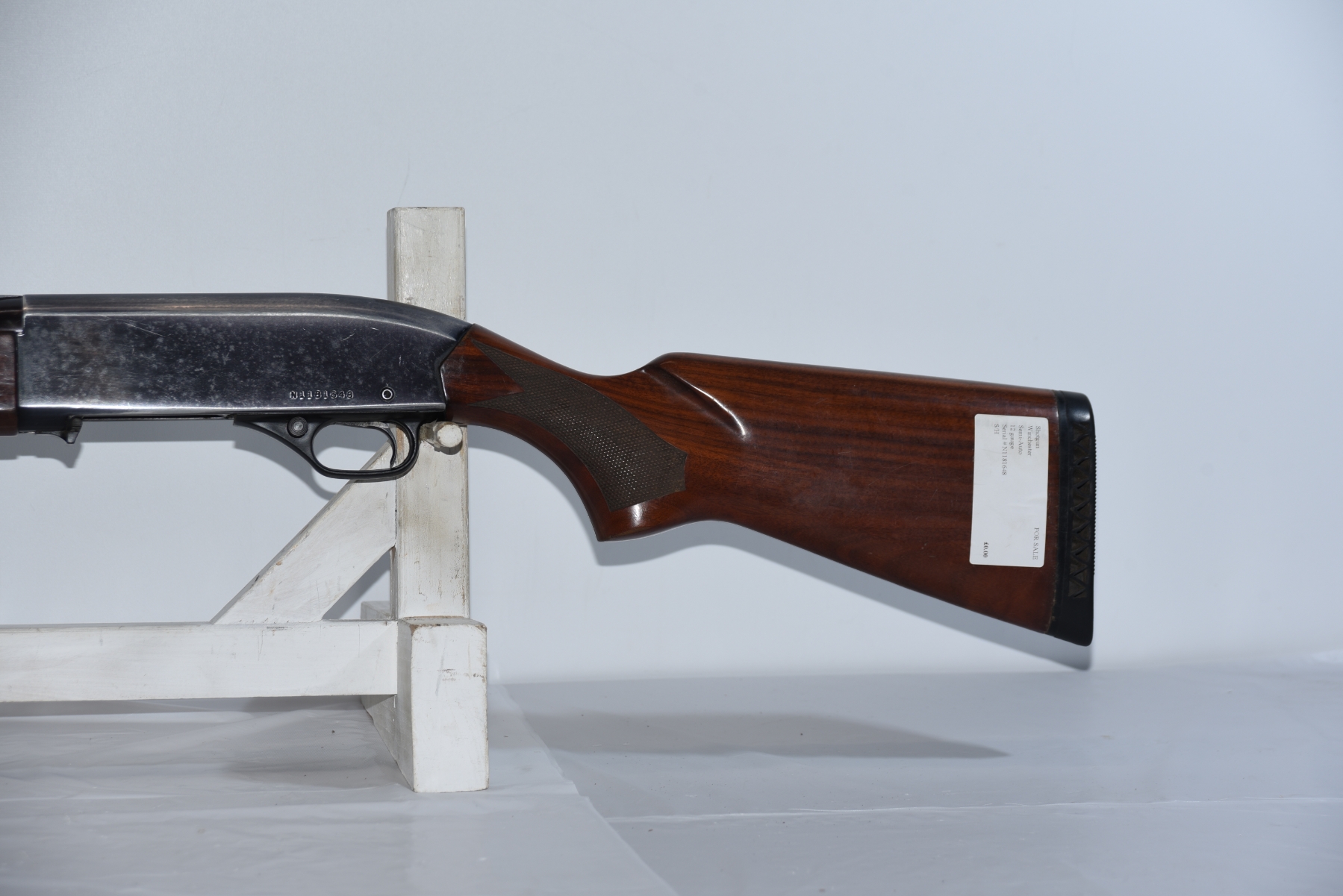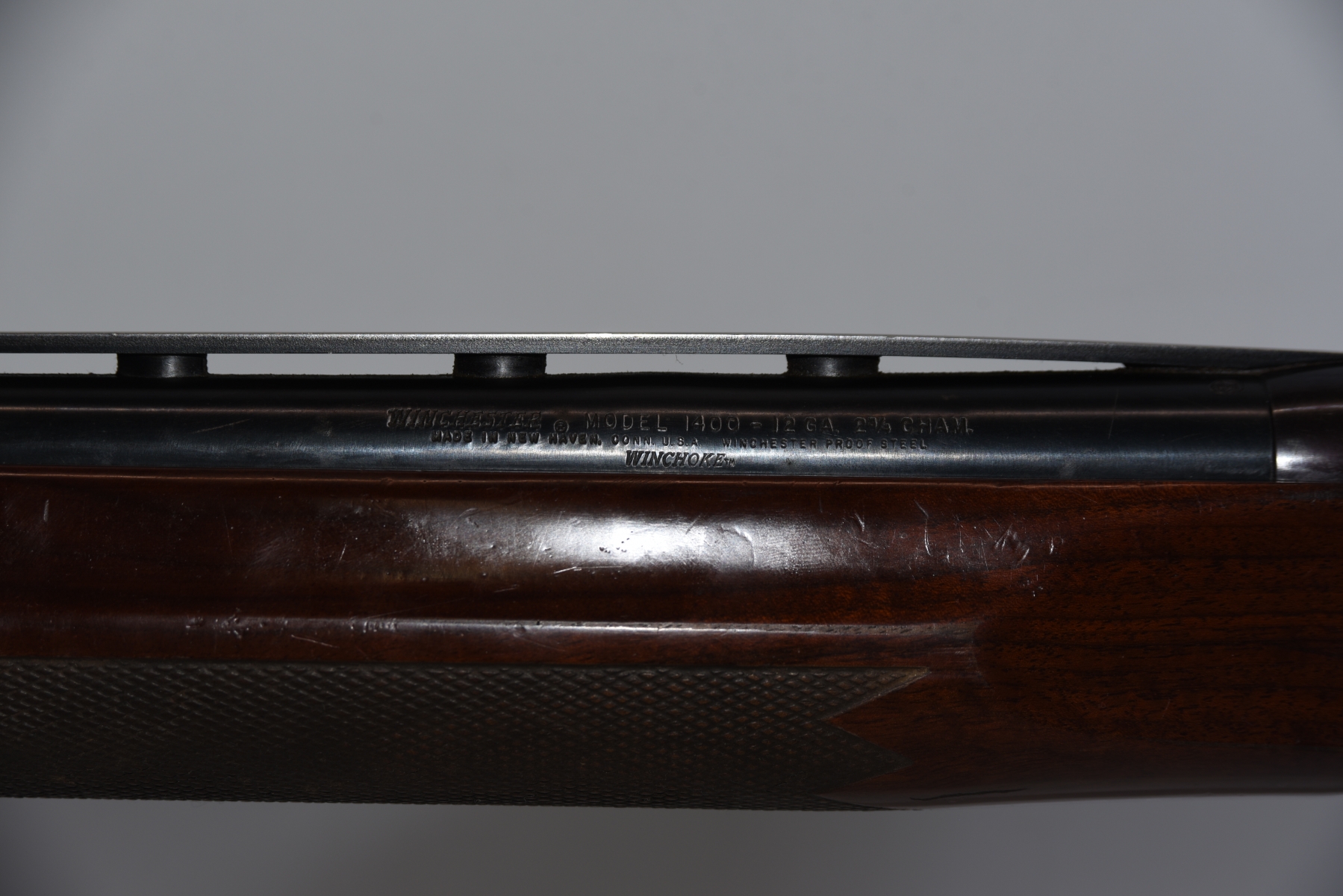 Wood stock shows scratches, scuffs, finish wear areas; condition is good.