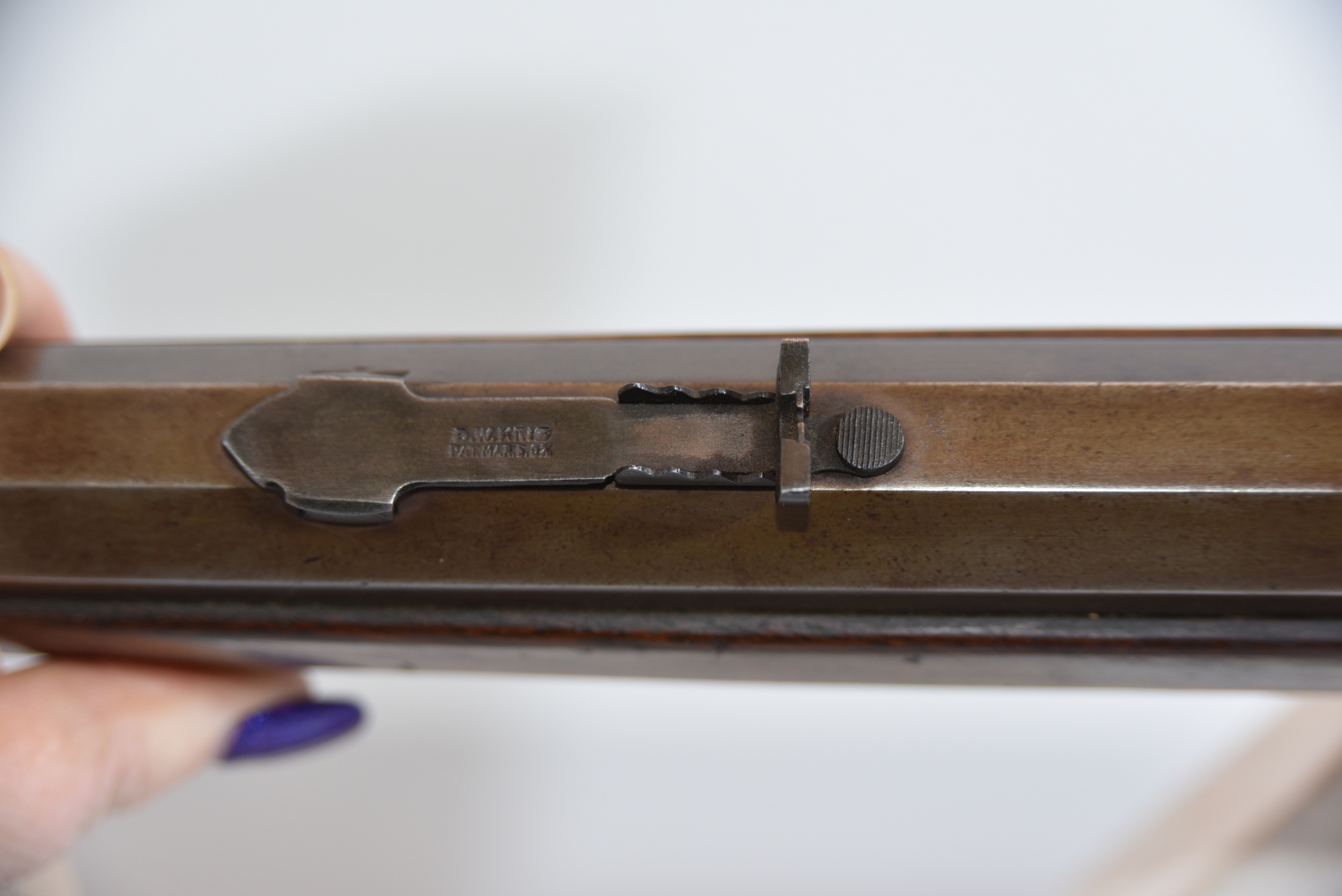 Wood stock shows some light scratches, scuffs, dents, fine crack in the forearm; condition is very good for age.
