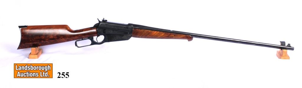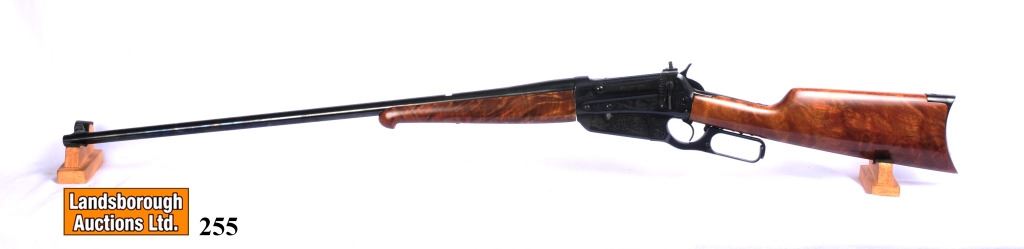 Non-restricted, lever action, 303 British, 28" barrel, SN 15238. Replacement wood very good, metal is reblued, bore stained. Has a Lyman rear peep, no back sight.