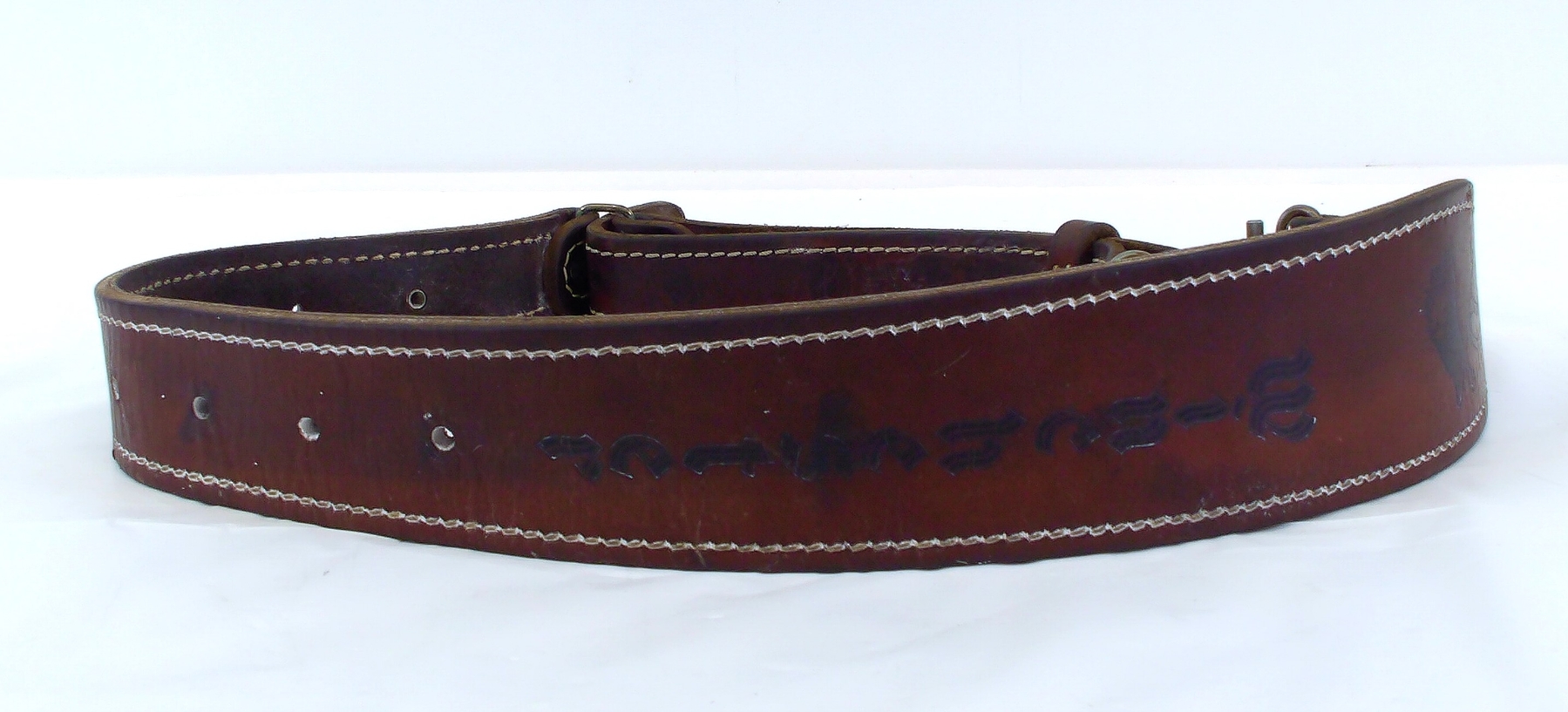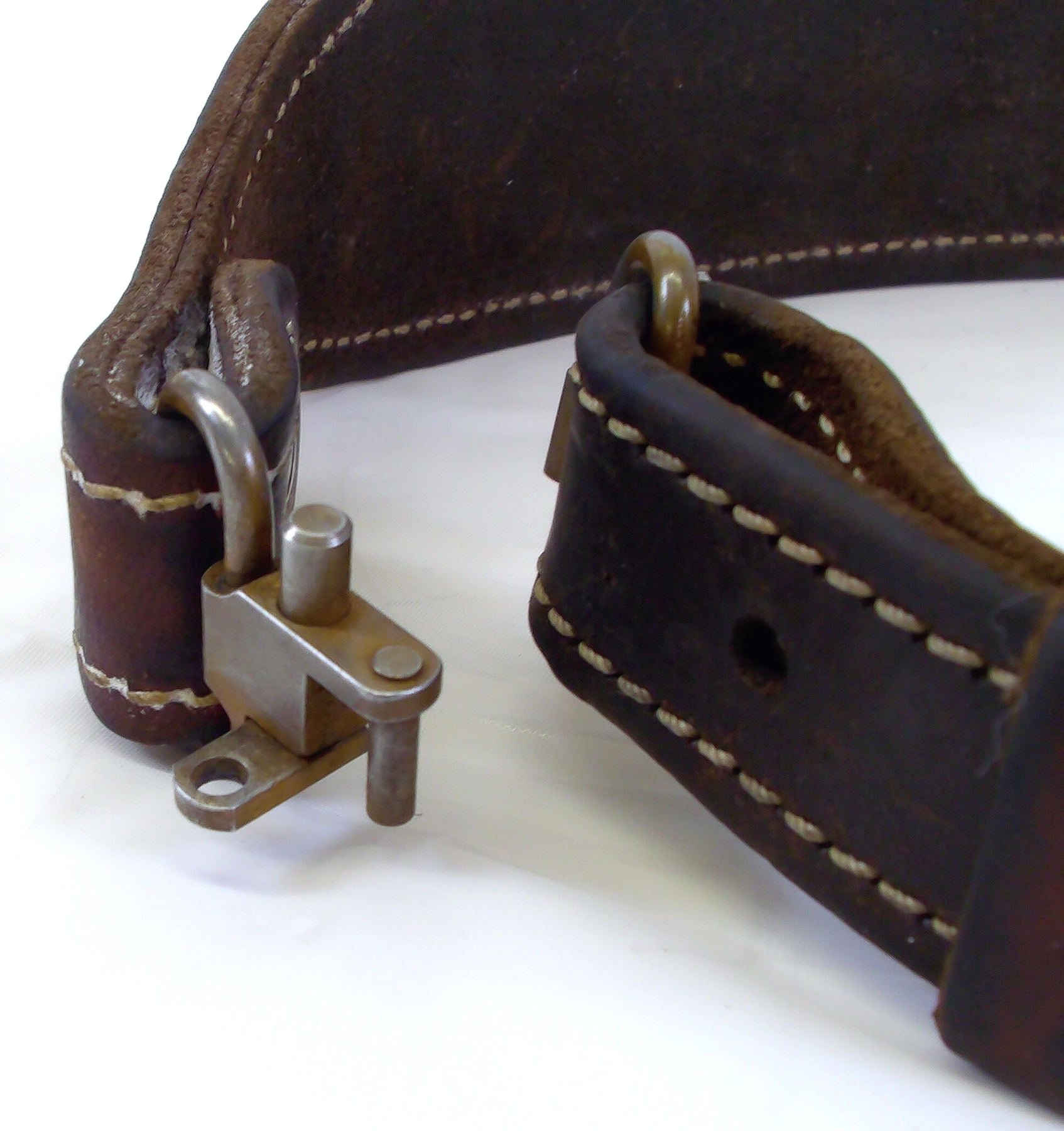 Has some minor rust on the metal parts and some white marks on the leather