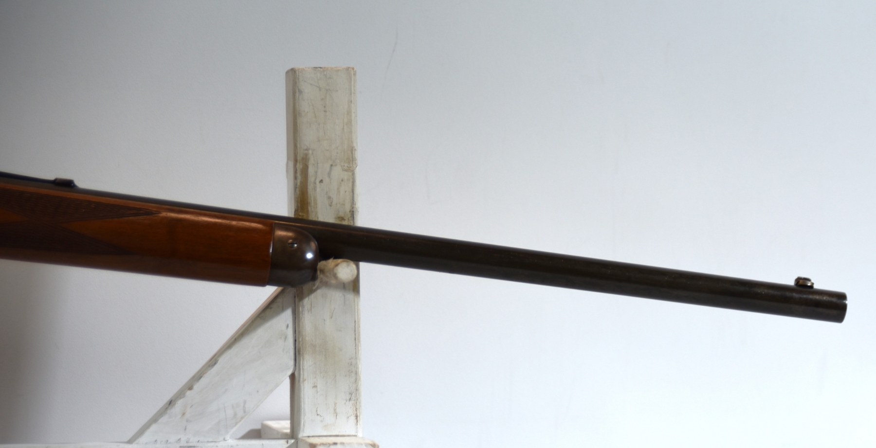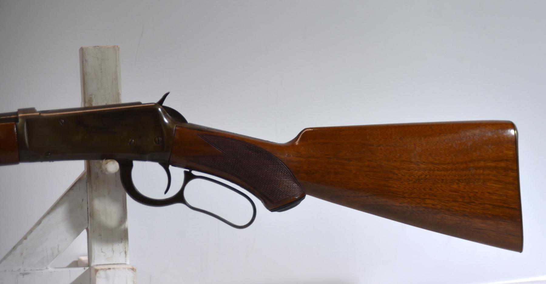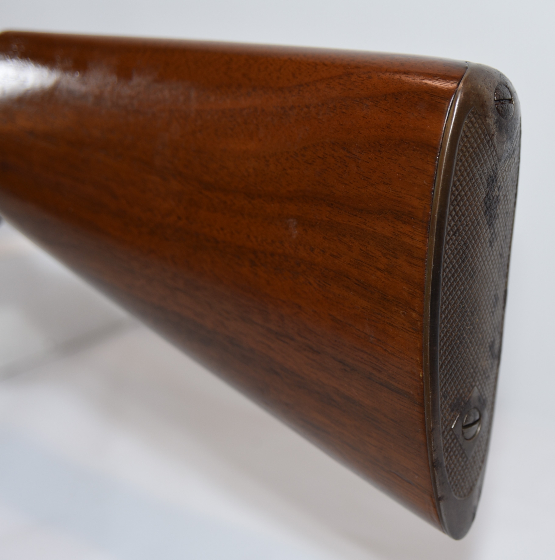 The premium checkered stock shows minimal handling; condition is excellent.