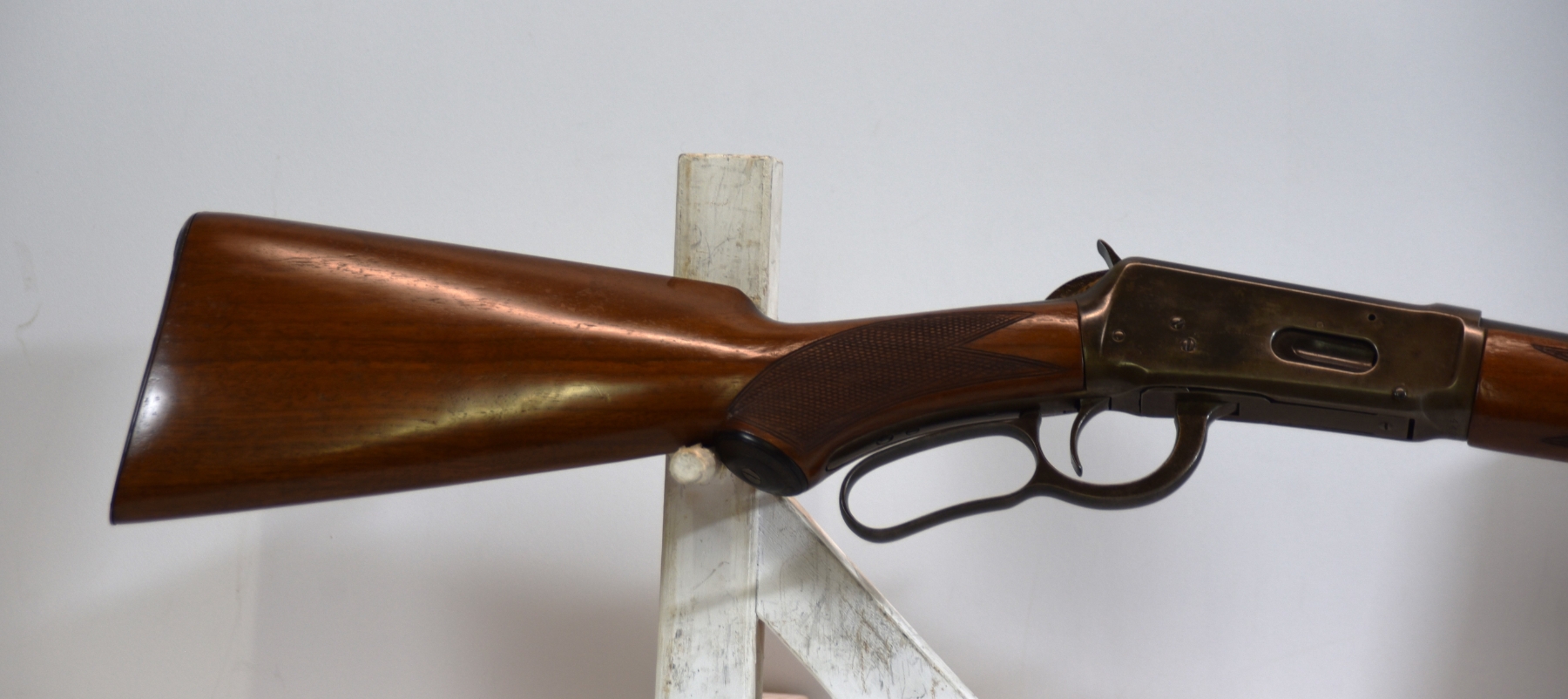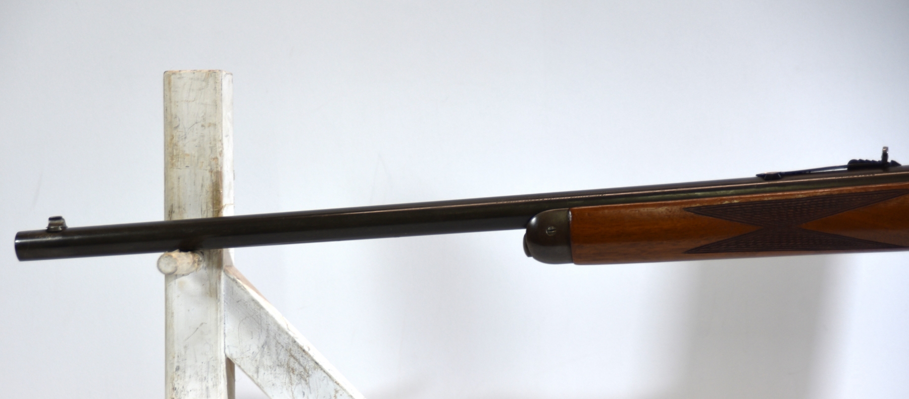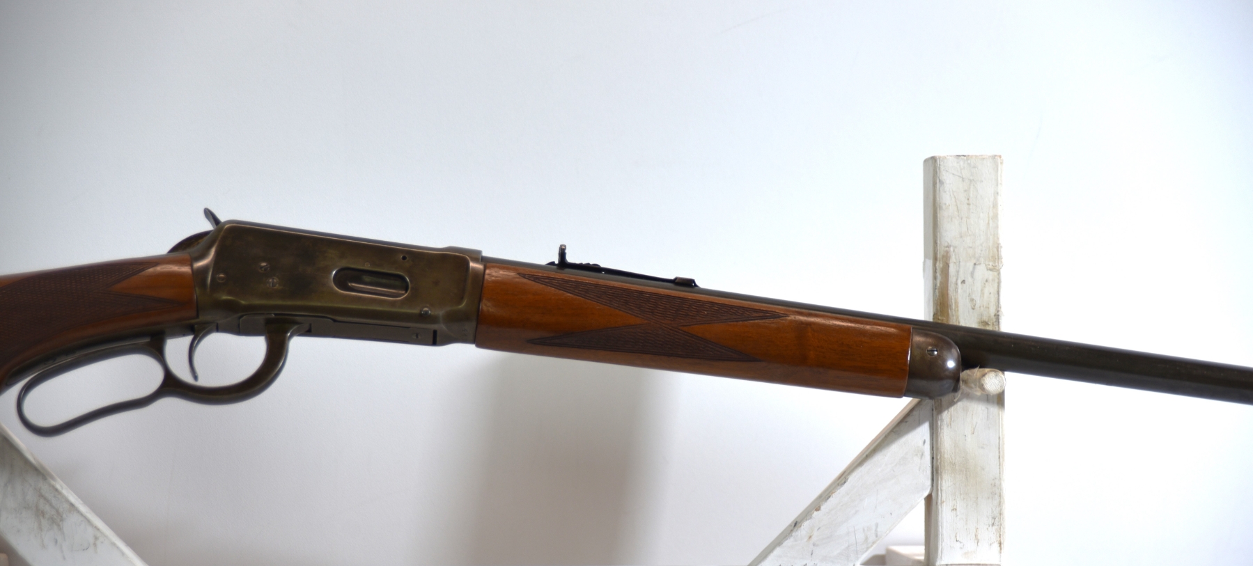 The premium checkered stock shows minimal handling; condition is excellent.
