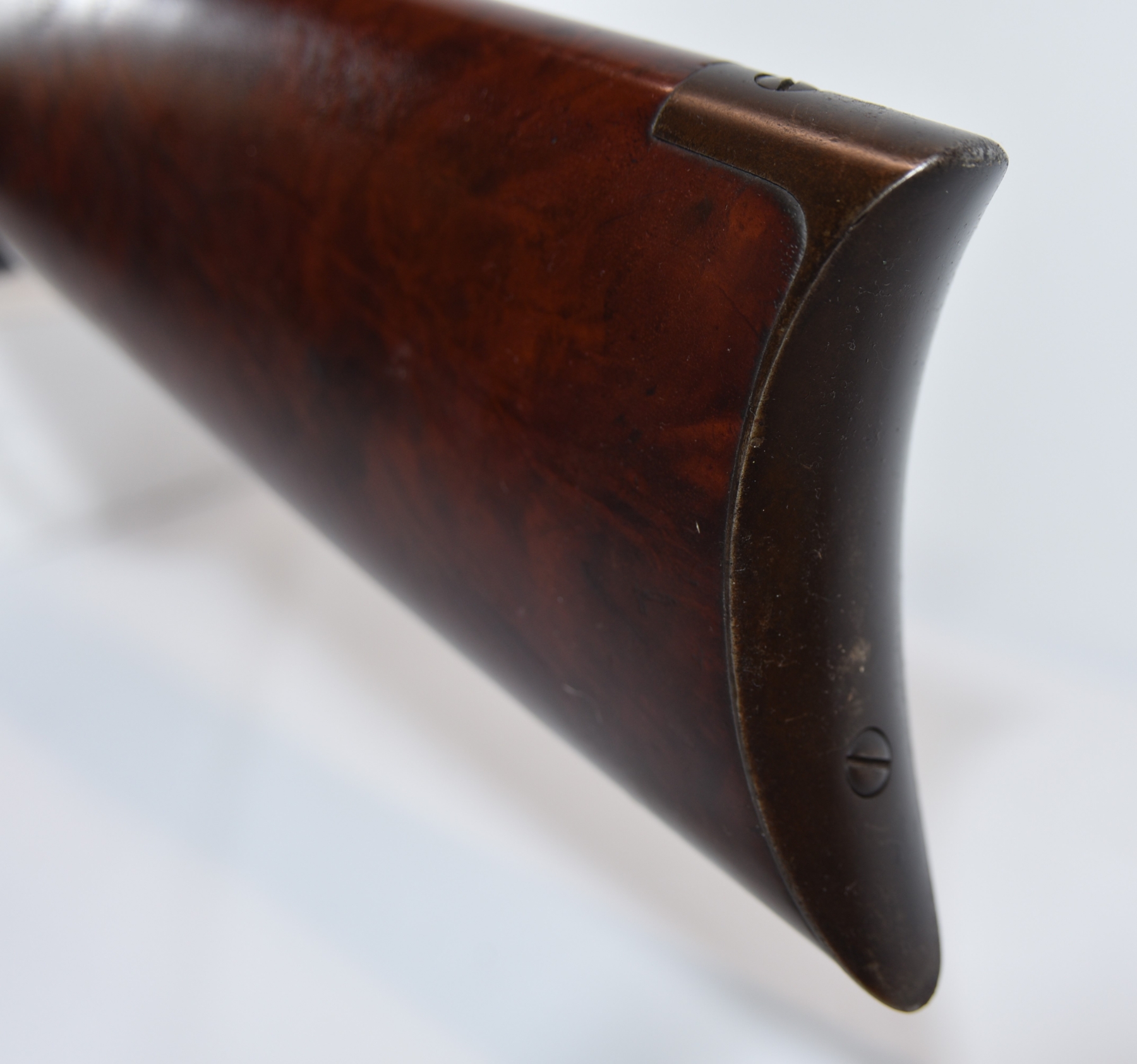 Metal finish shows patina, worn finish, dried oil in areas, there are some scratches and scuffs, very light fine pitting in very small areas; condition is very good for age.
