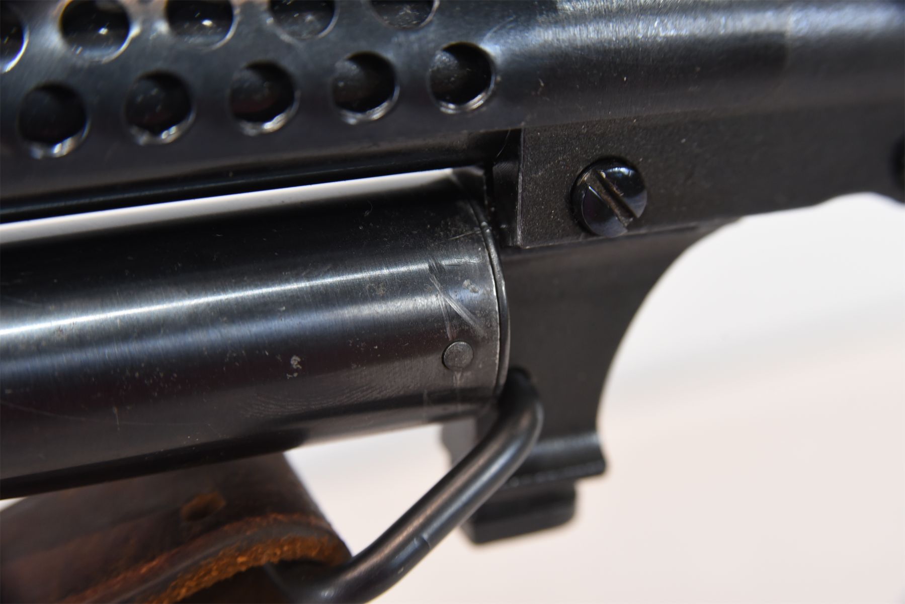 Barrel Length: 20" w/ Fixed Improved Cylinder Choke. Heat Shield and Bayonet Lug are aftermarket.