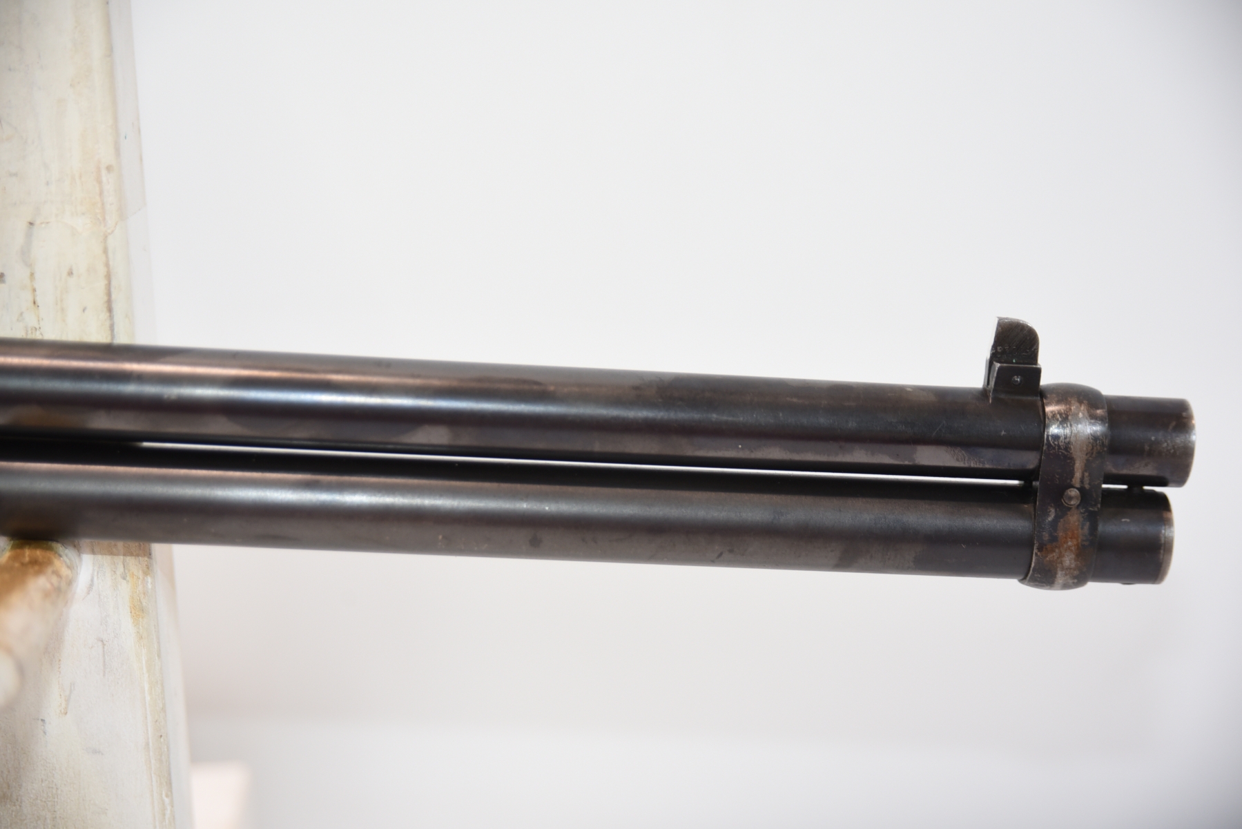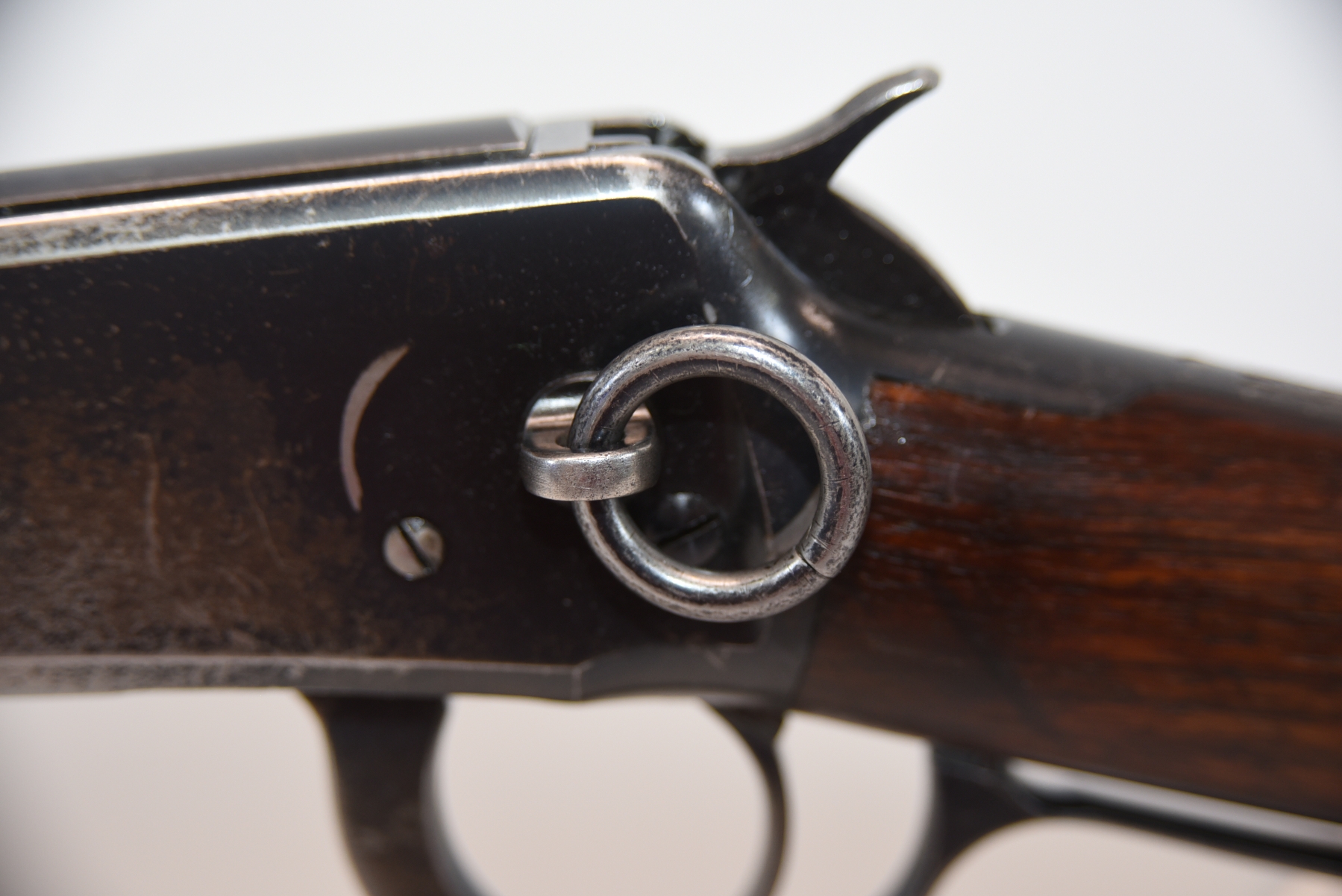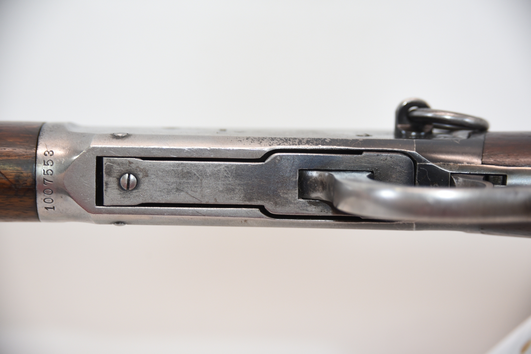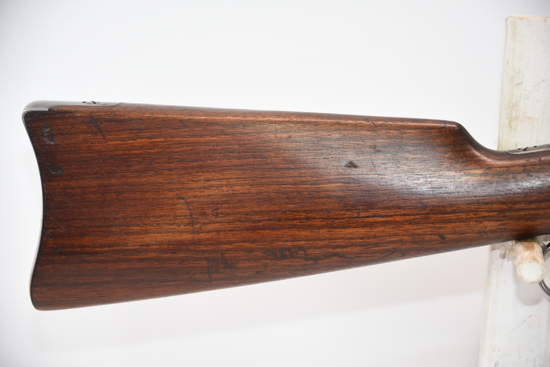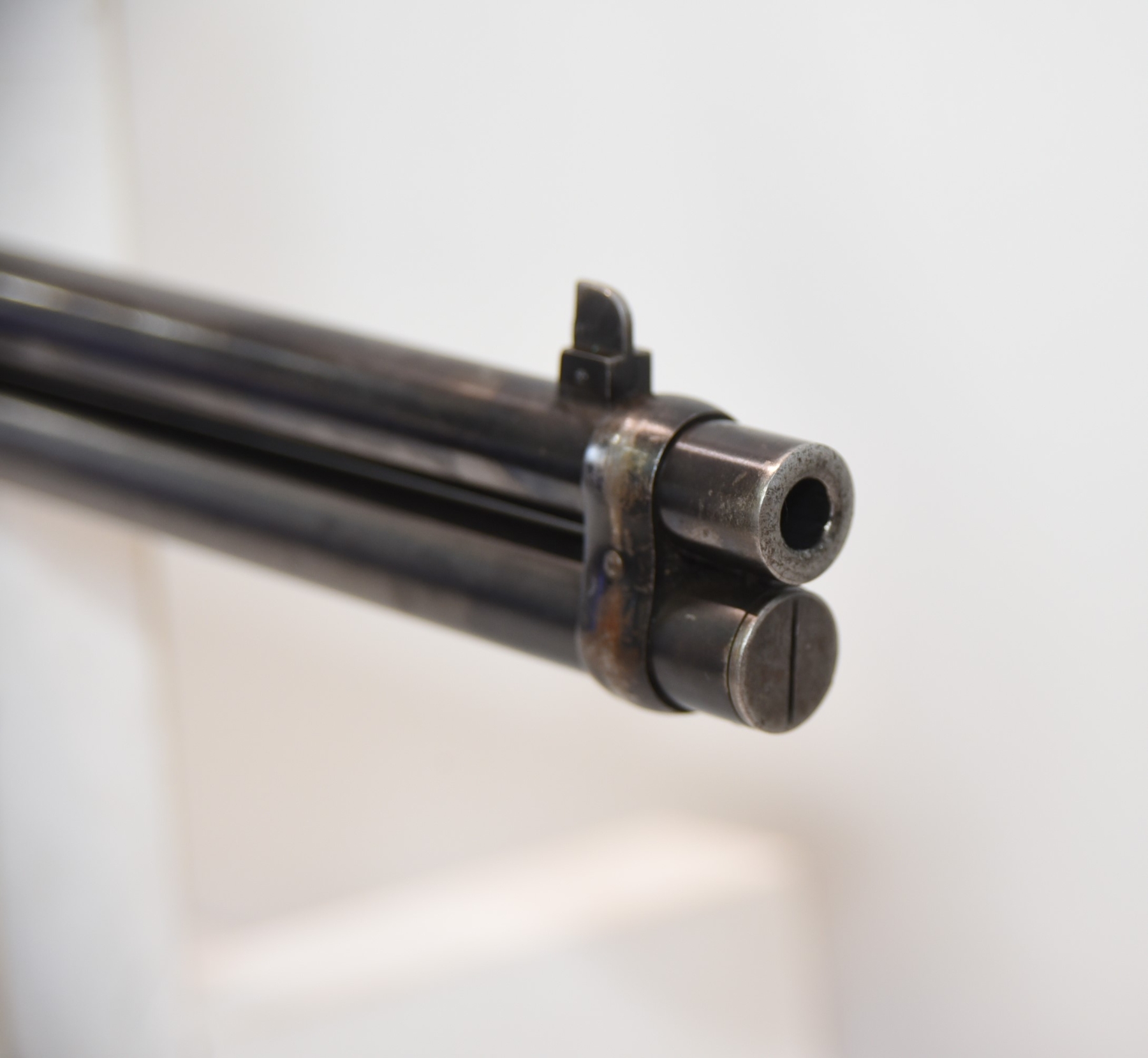 The wooden stock has a number of scratches and dents on both sides. The receiver has scratches and scuffs on both sides. Receiver does have a saddle ring attached. The wooden forearm has a number of scratches and dents on both sides. The shiny bluing does have scratches and greying on both sides. The bore is shiny with apparent rifling. Has a front sight and sigth elevator.