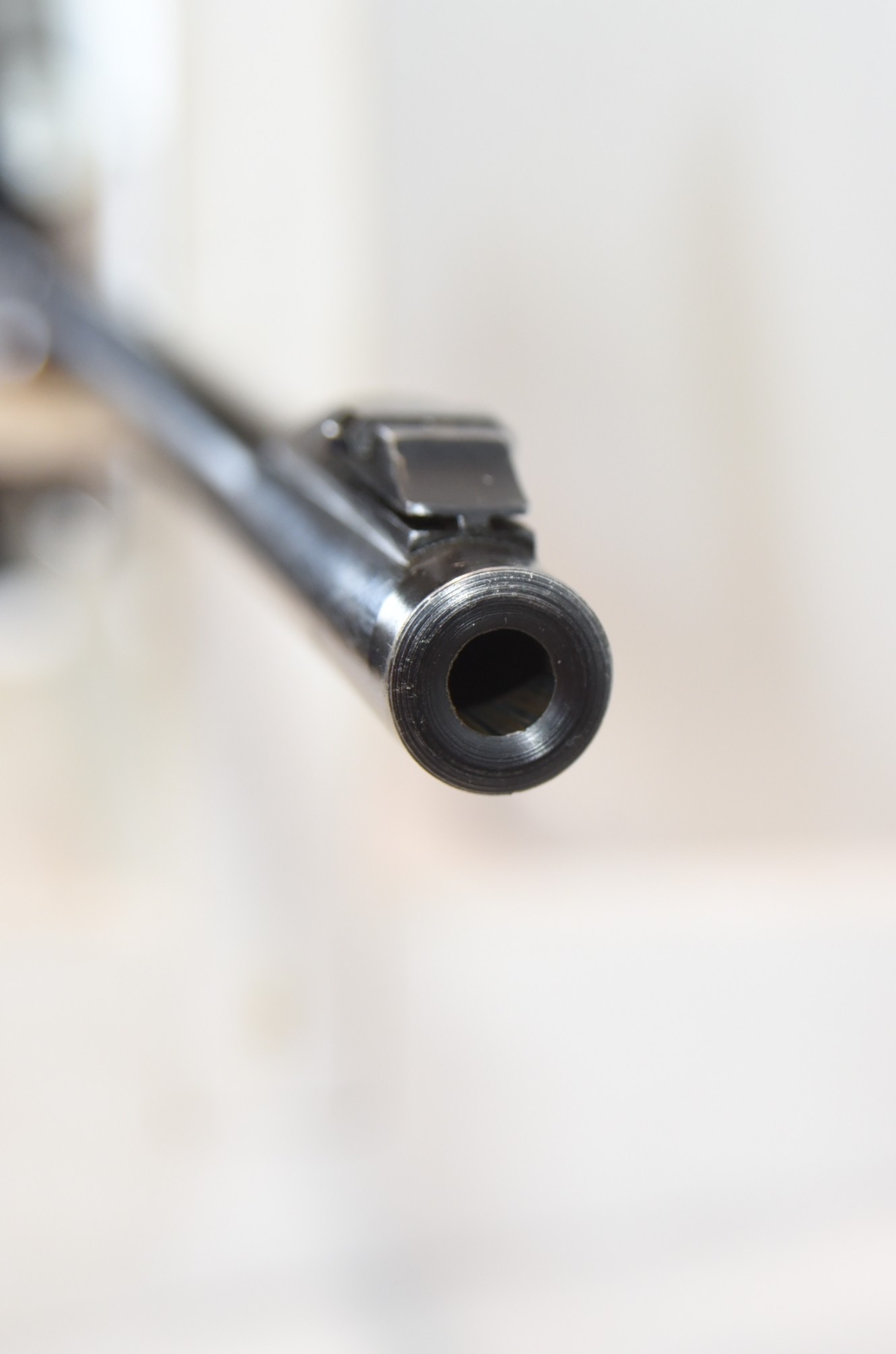 Metal shows no front or rear sight, some light finish wear, some light scratches and scuffs; condition is excellent.