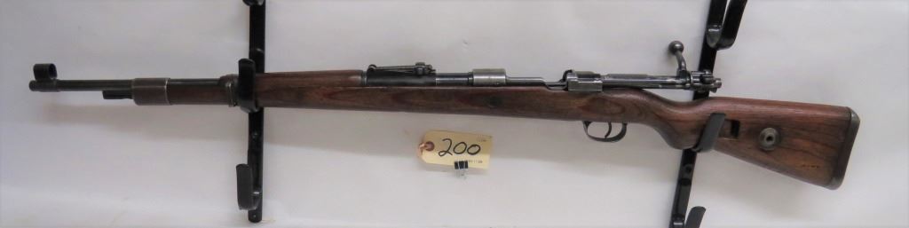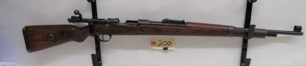 Non-restricted, bolt action, 8mm mauser, 24" barrel, SN 4236, wood is in good condition with some handling marks, bluing is starting to turn grey, bore is dark rifling is prominent, serial numbers do not match and gun is missing the cleaning rod